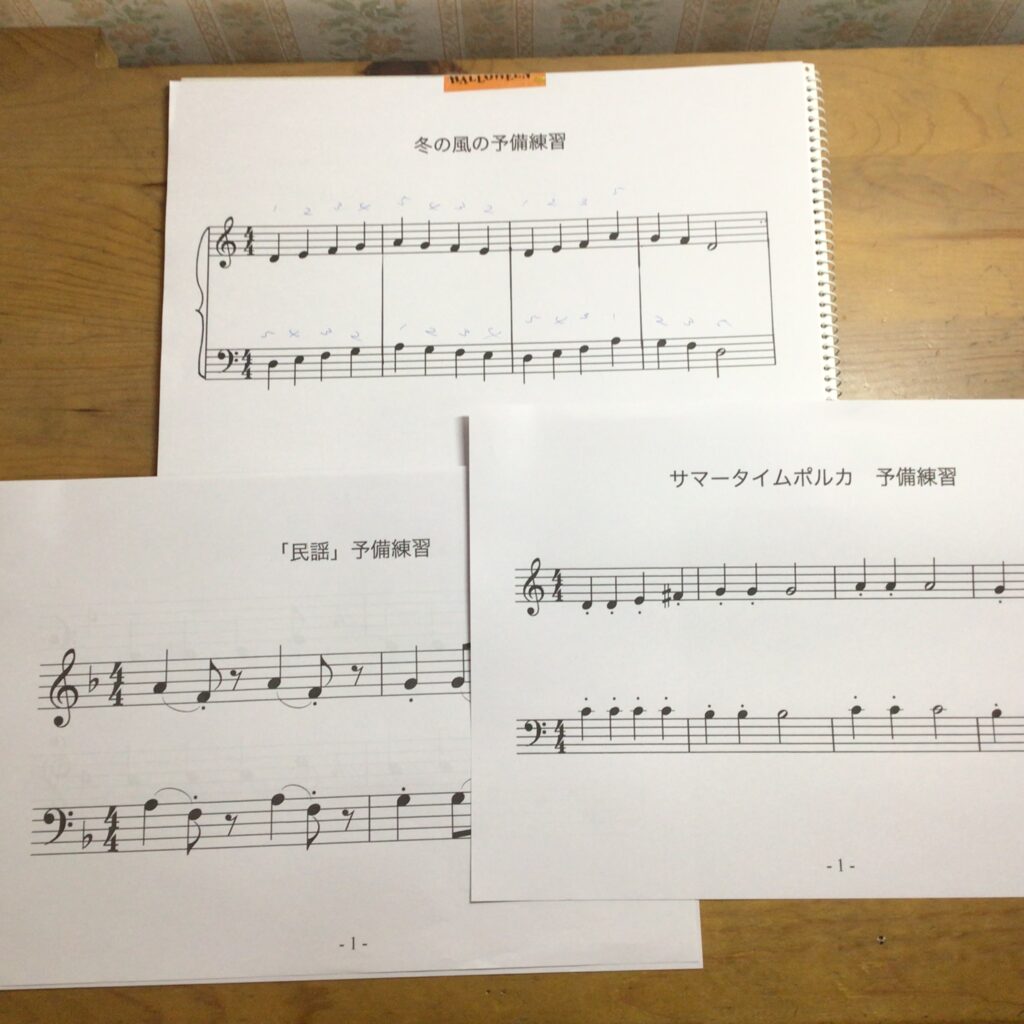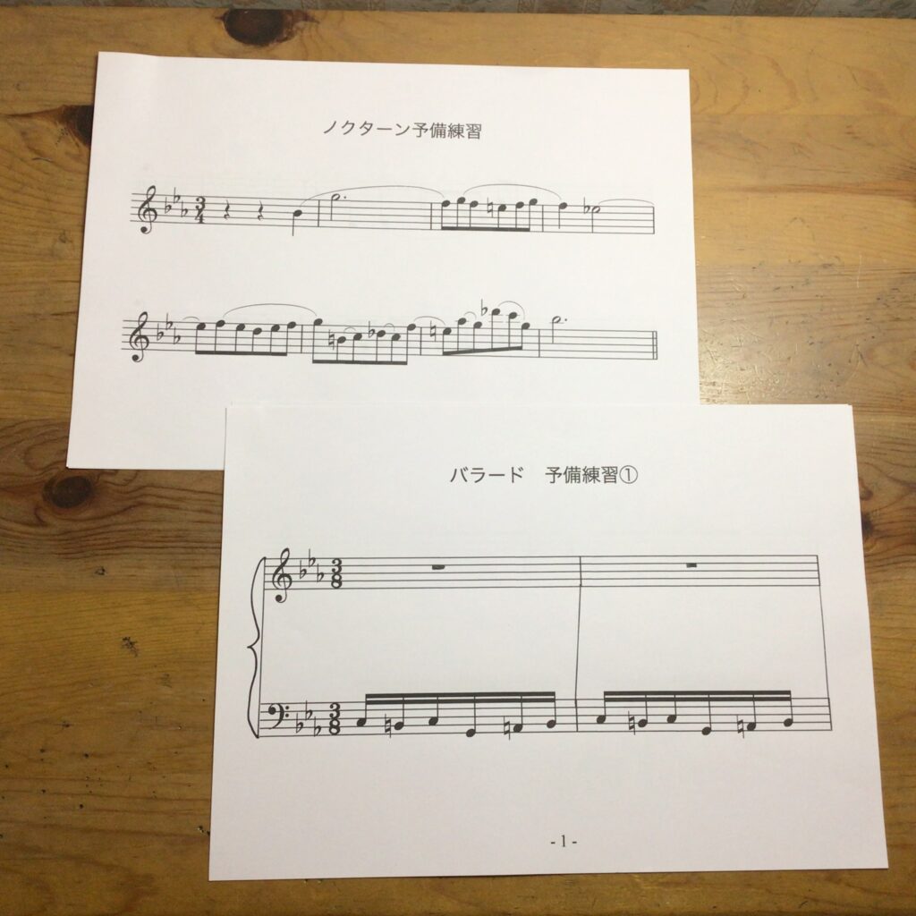 予備練習用の楽譜を使って、“難しいところ”や“苦手なところ”を譜読みしています。